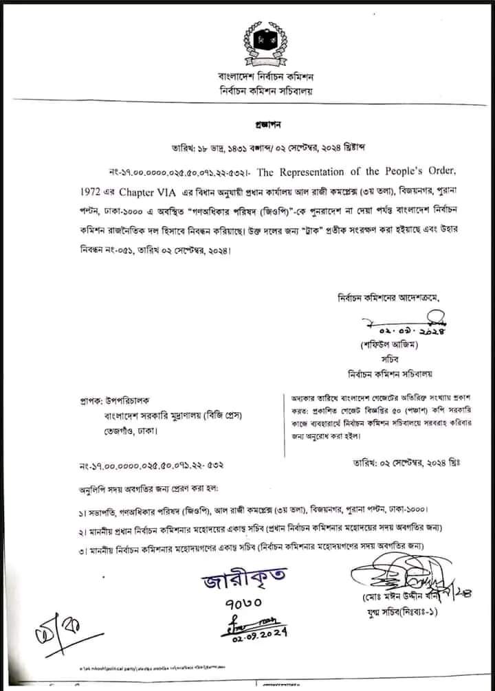 ইসিতে নিবন্ধন পেল গণ অধিকার পরিষদ